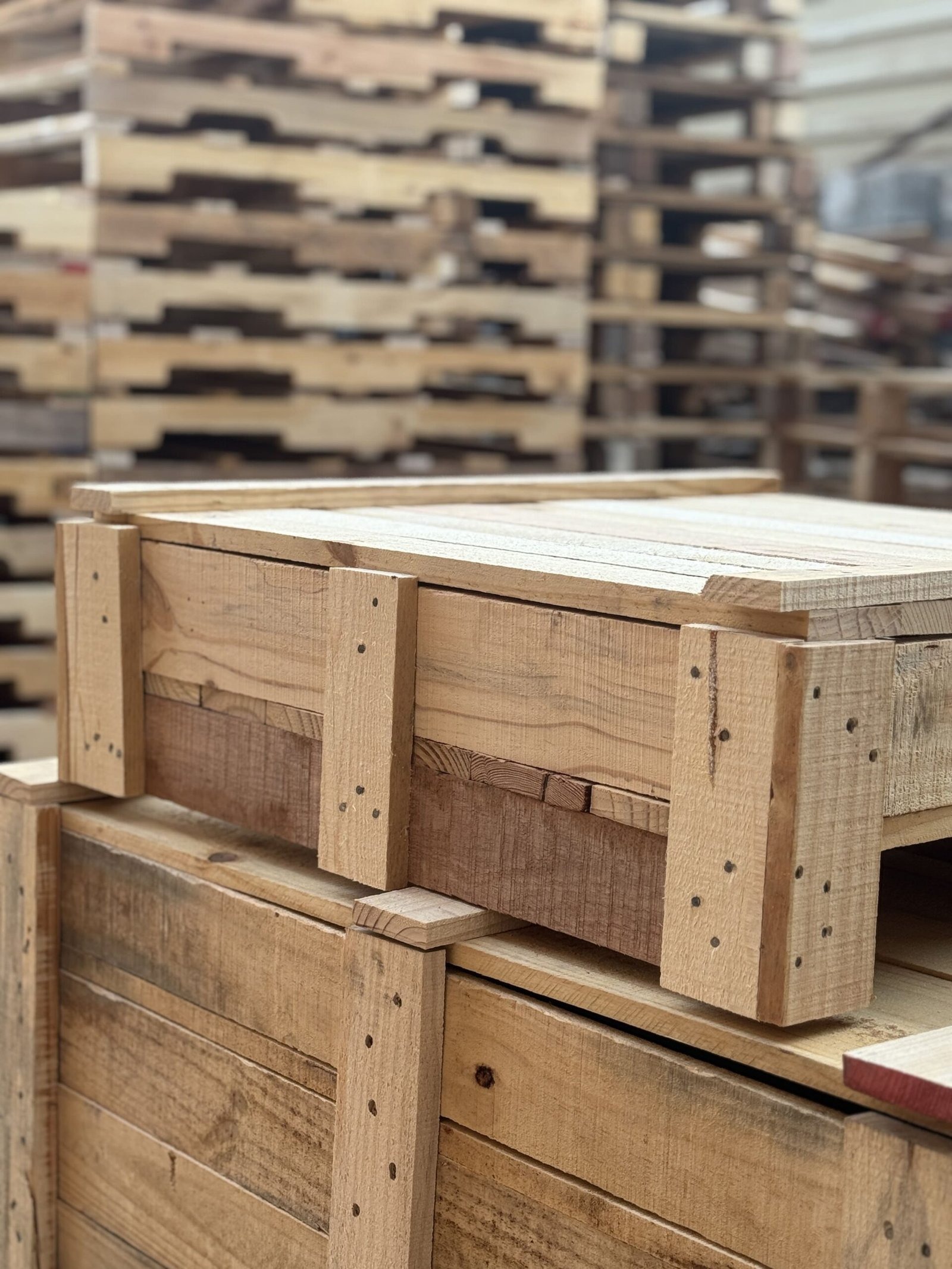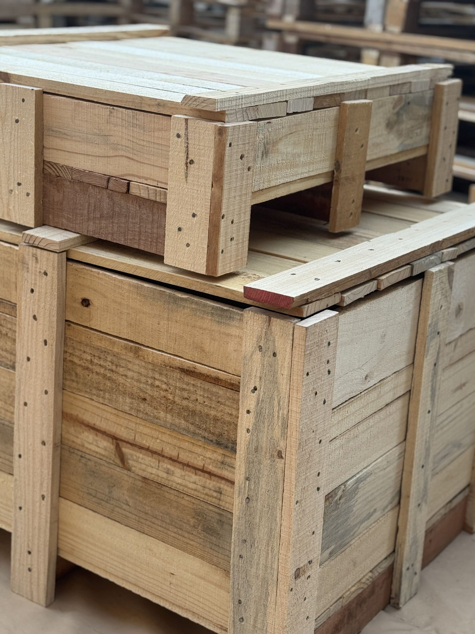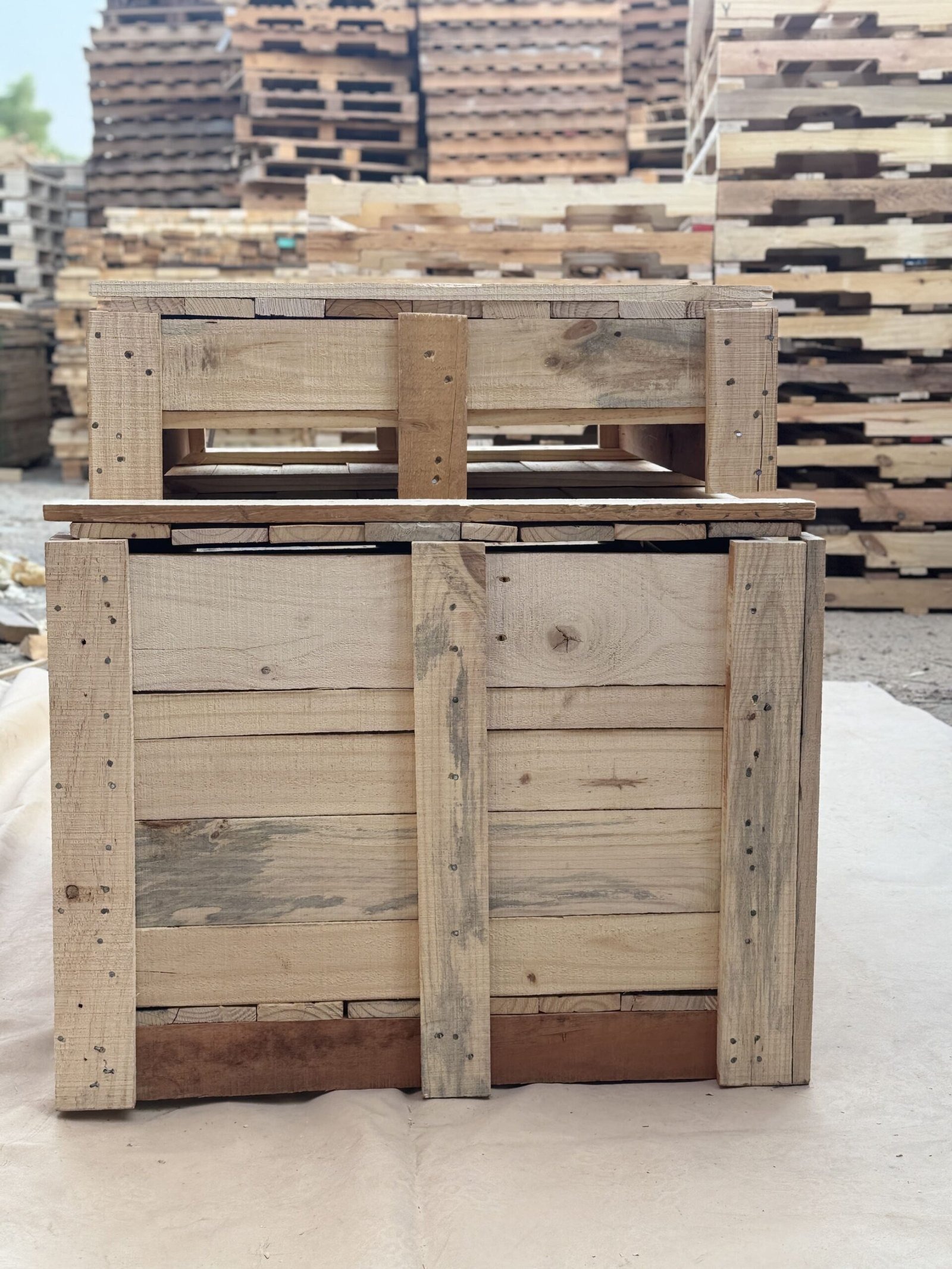 Al Wadi Rafidain Carpentry, we manufacture and supply high-quality wooden pallets, wooden crates, wooden boxes, and custom wooden solutions across the UAE.